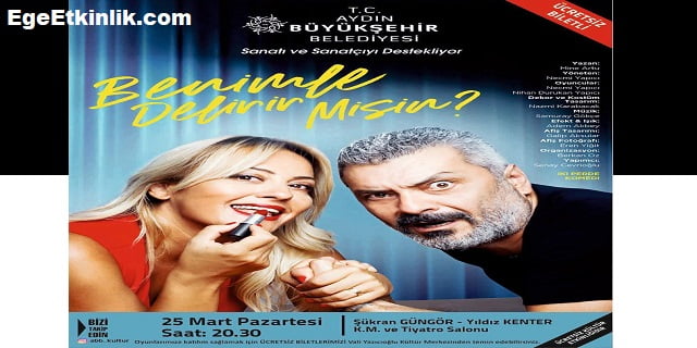 Necmi Yapıcı ve Nihan Durukan Yapıcı’nın oynadıkları Benimle Delirir Misin? tiyatro oyunu, 25 Mart Pazartesi günü Aydın’da ücretsiz olarak sahnelenecek.