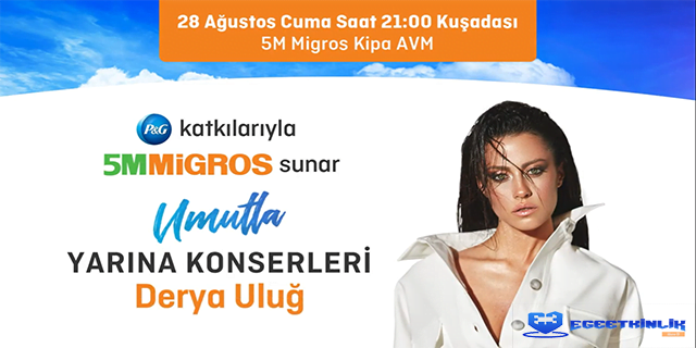 Okyanus, Ne Münasebet, Ah Zaman gibi şarkıları ile tanınan şarkıcı Derya Uluğ, 5MMigros ve P&G’nin düzenlediği Umutla Yarına Konserleri kapsamında, Kuşadası 5M Migros Kipa AVM’de ücretsiz bir konser verecek. Konser pandemi kurallarına uygun olarak gerçekleşecek.