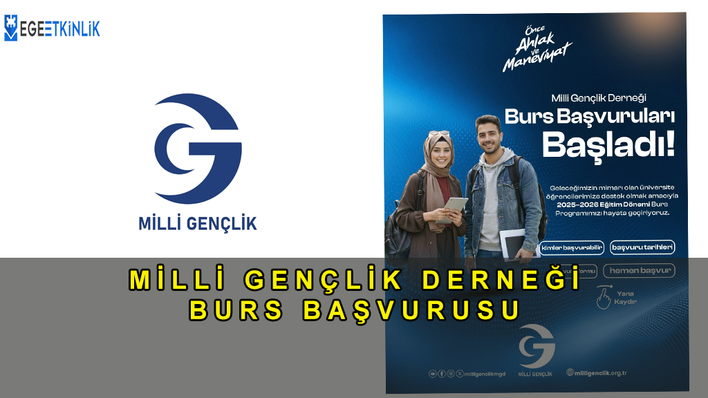 Milli Gençlik Derneği burs başvuruları çevrim içi olarak alınmaya başladı. Başvuru için derneğin internet sitesindeki formun eksiksiz doldurulması, başvuru sonrası gerekli belgelerin il başkanlığına asıllarıyla teslim edilmesi gerekiyor. Son başvuru tarihi 05 Ocak 2026 olarak açıklandı.