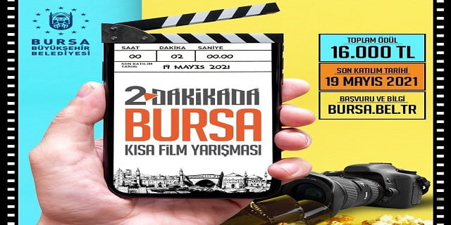 Bursa Büyükşehir Belediyesi Halkla İlişkiler Şube Müdürlüğü, Bursa’nın tanıtılması amacıyla, kısa film yarışması düzenliyor. “2 Dakikada Bursa” sloganı ile düzenlenen yarışmada toplam ödül 16.000 TL. Son başvuru tarihi ise 19 Mayıs 2021 yani Atatürk’ü Anma, Gençlik ve Spor Bayramı’na denk gelen gün.