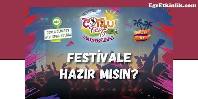 Çorlu da bu yıl ilk kez gerçekleşecek Çorlu Fest, 23, 24, 25 Ağustos 2019 tarihleri arasında Olimpos Atlı Spor Kulübünde gerçekleşecek. Festival sanatçıları ve fırsat biletlerini sitemizde bulabilirsiniz.