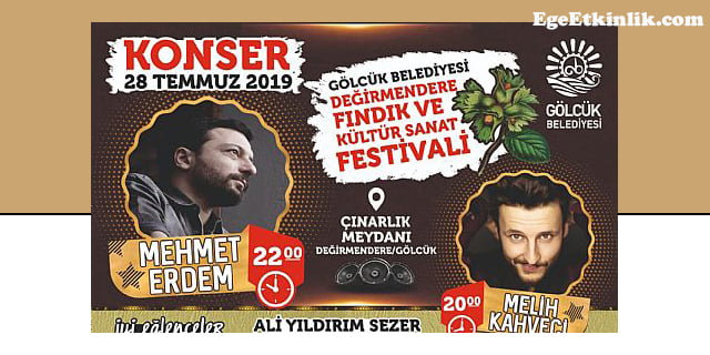 Değirmendere Fındık ve Kültür Sanat Festivali kapsamında sahne alacak olan Mehmet Erdem, çok dinlen şarkılarıyla hayranlarına duygu dolu anlar yaşatacak. Konser öncesi de Gölcük ‘ün yetiştiği önemli sanatçılardan Melih Kahveci de sahne alacak.