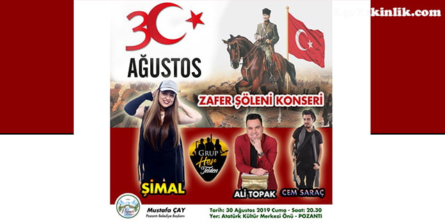 Kutlama etkinlikleri kapsamında Pozantı Belediyesi ‘nin düzenlediği konser de yerel sanatçılar Şimal, Cem Saraç ve Ali Topak sizlerle buluşacak.