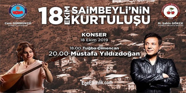 Saimbeyli Belediyesi’nin her sene düzenlediği Düşman İşgali’nden Kurtuluş Etkinlikleri bu sene de büyük bir coşku ile kutlanacak. 18 Ekim tarihinde Saimbeyli Hükümet Konağı önünde organize edilecek etkinliklerde konser, dans gösterileri, konuşma ve yöresel ürünlerin tanıtımları yapılacak. Çevre il ve ilçelerden de katılımın olacağı etkinliklerde ünlü ses sanatçıları Tuğba Çimencan ve Mustafa Yıldızdoğan sahne alacaklar. Hepinizi bekliyoruz.