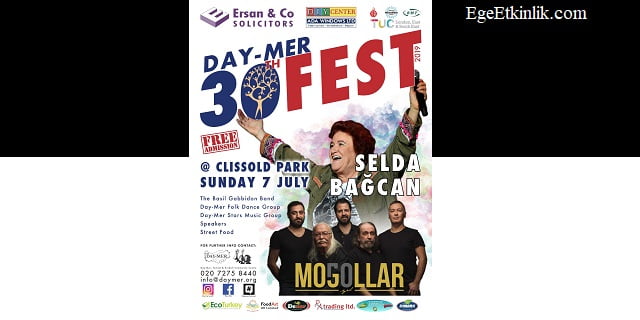 Day-Mer tarafından bu sene 30.su gerçekleştirilecek olan Day-Mer Kültür ve Sanat Festivali kapsamında Türk Halk Müziğinin efsane ismi Selda Bağcan ve efsane Türk rock grubu Moğollar 7 Temmuz tarihinde Londrada ücretsiz bir konser verecek.