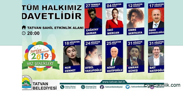 Bu sene ilk kez gerçekleşen ve ülkemizin en güzel şehirlerinden biri olan Bitlis’in Tatvan ilçesinin tanıtılması amacıyla yapılan Tatvan Yaz Şenlikleri, birbirinden renkli programlarla ziyaretçilerine keyifli anlar yaşatacak. Tatvan Sahil Alanı’nda düzenlenecek programlara tüm vatandaslar davetlidir.