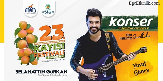 Türk pop müziği sanatçısı ve besteci Yusuf Güney 23.Malatya Kayısı Festivali kapsamında 20 Temmuzda ücretsiz bir halk konseri verecek.