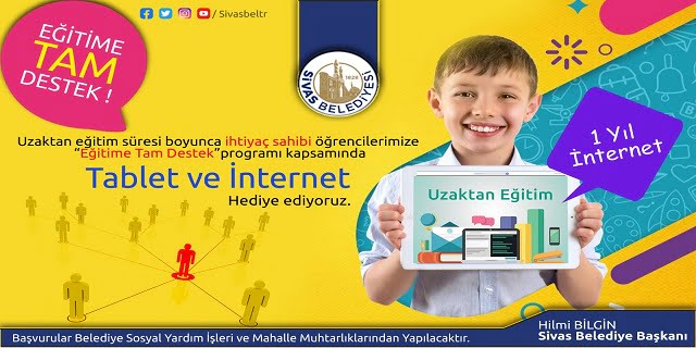 Sivas Belediyesi uzaktan eğitime destek amacıyla muhtaç ailelere tablet ve internet dağıtıyor. Peki Sivas Belediyesi’nin tablet ve internet kampanyasına nasıl başvurulur? Yardım kampanyasına nasıl katılabiliriz?