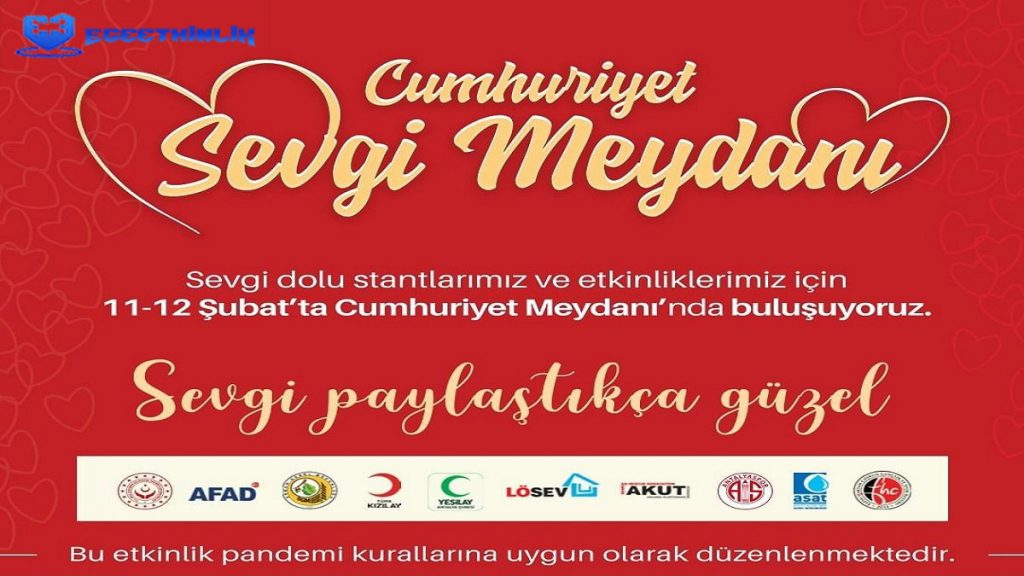 Antalya Büyükşehir Belediyesi, sevgililer gününe özel olarak Cumhuriyet Meydanı’nda 11-12 Şubat tarihlerinde Sevgi Meydanı etkinliği düzenleyecek.