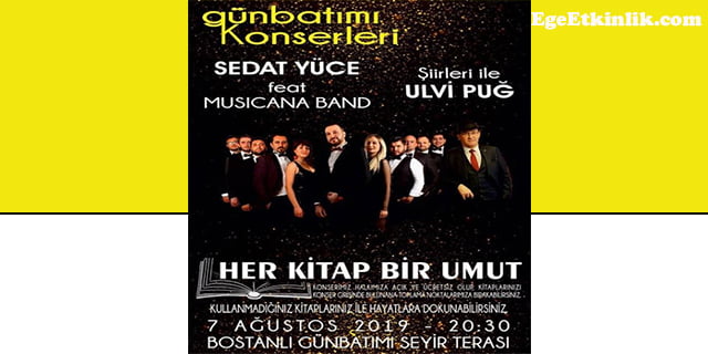 İzmir Büyükşehir Belediyesi tarafından düzenlenen Günbatımı Konserleri, Her Kitap Bir Umut projesi kapsamında düzenlenecek Sedat Yüce ve Musicana Band konseriyle devam ediyor!