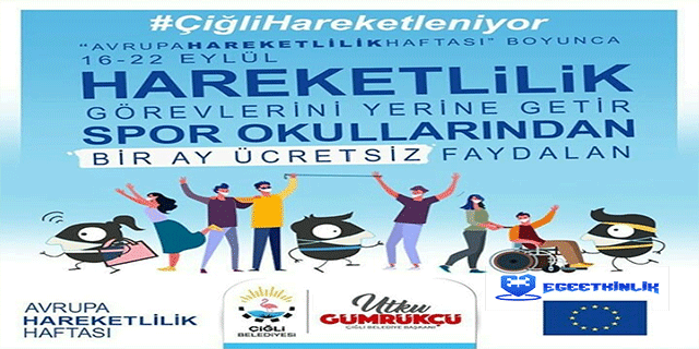 #ÇiğliHareketleniyor hashtagi ile Avrupa Hareketlilik Haftası’na giren Çiğli Belediyesi, sizlere birbirinden önemli etkinliklere çağırıyor. Hareketlilik görevlerini yerine getir, spor okullarından bir ay ücretsiz faydalan.