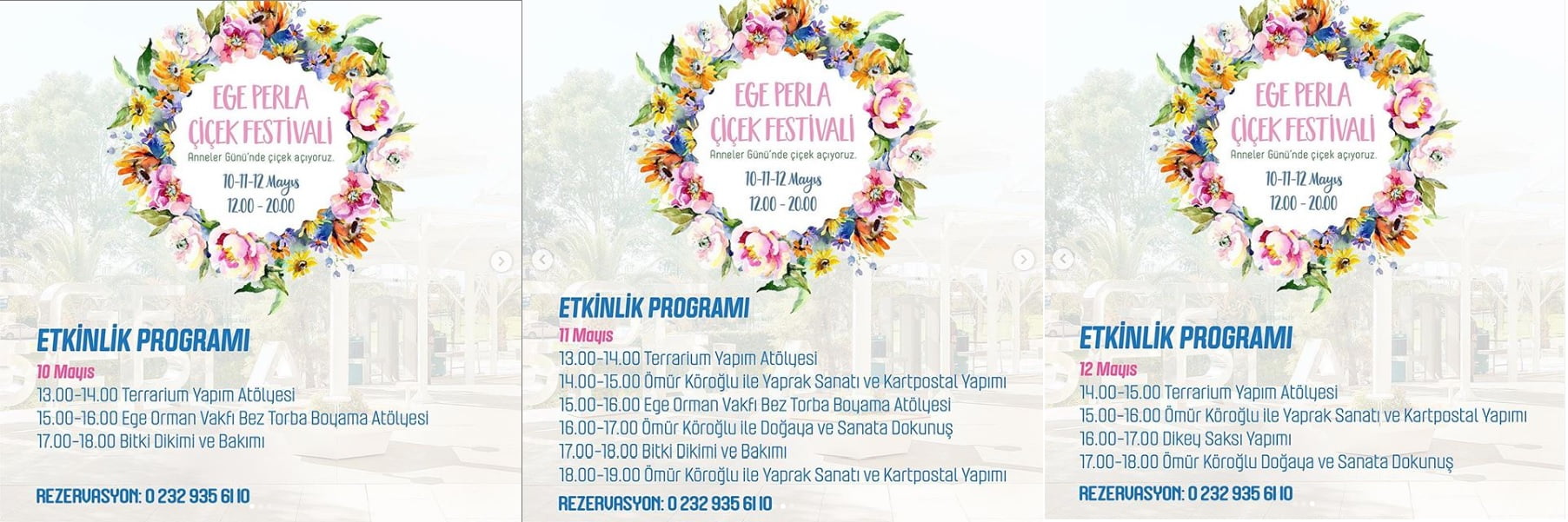 Anneler Günü’nde Ege Perla’da çiçek açıyoruz! 10-11-12 Mayıs günlerinde gerçekleşecek olan Çiçek Festivali’nde çiçeklerle ilgili çeşitli atölyeler ve daha birçok sürpriz sizi bekliyor!