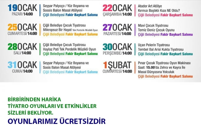 Aşağıda 20-31 Ocak 2020 tarihleri arasında gerçekleşecek çocuk etkinlikleri sizler için listelenmiştir.