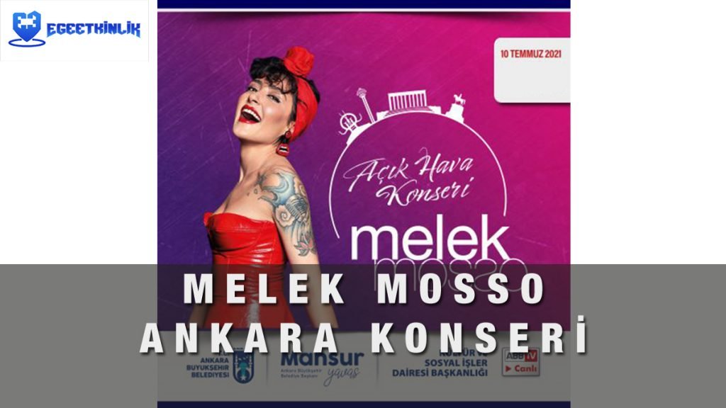 Ankara Büyükşehir Belediyesi tarafından düzenlenecek konserde Melek Mosso sevilen şarkılarını sizler için seslendirecek. Pandemi yasaklarının kalkmasıyla kültür sanat etkinliklerine ağırlık veren ve her hafta bir sanatçıyı Ankaralılarla buluşturan Büyükşehir bu haftasonu da Melek Mosso’yu ağırlayacak. Melek Mosso hayranlarını heyecanlandıran açık hava konseri ücretsiz olarak dinlenebilecek. Konser canlı olarak sosyal medya hesaplarından ve ABB TV den de yayınlanacak.