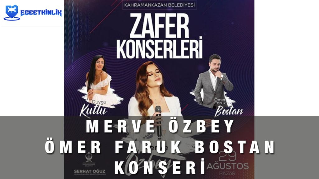 Kahramankazan Belediyesi’nin 30 Ağustos Zafer Bayramı kutlamaları kapsamında organize ettiği konser de sahne alcak olan Merve Özbey ve Ömer Faruk Bostan sevilen şarkılarını sizler için seslendirecek. 29 Ağustos akşamı ayrıca Duygu Kutlu’da sizlerle buluşacak.