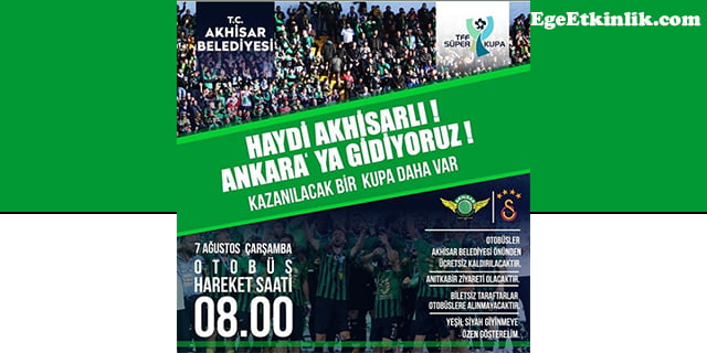 Lig Şampiyonu Galatasaray ile Ziraat Türkiye Kupası Şampiyonu Akhisarspor, 7 Ağustos Çarşamba günü karşılacağı Süper Kupa Finaline Akhisar Belediyesi otobüs kaldıracak.