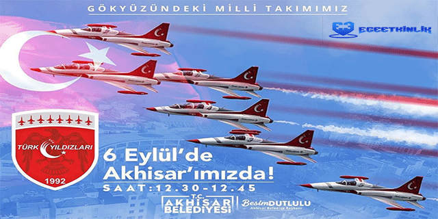 Türk Hava Kuvvetleri Akrotimi Türk Yıldızları, 6 Eylül Akhisar’ın Düşman İşgali’nden kurtuluşunun 98.yılına özel olarak gösteri uçuşu düzenleyecekler.