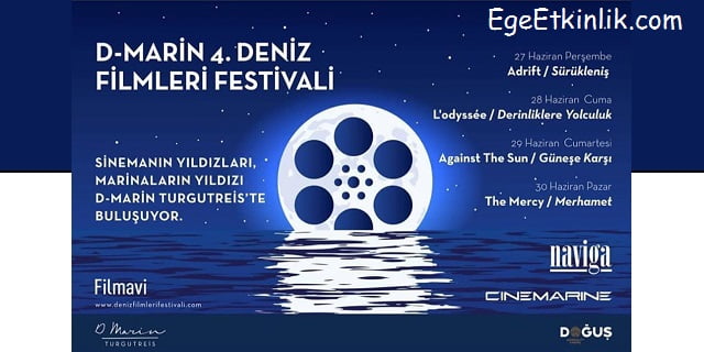 Festivalde denizlerde yaşamı konu alan 4 film sinemaseverlerle buluşacak. Açık hava sinemasına sahip tek marina olan D-Marin Turgutreis, denize, denizde yaşama ve insana dair tüm duyguların yer aldığı filmleri sinemaseverlere ücretsiz olarak sunuyor. Denizden ilham alan filmleri deniz tutkunlarıyla buluşturan etkinlik, 27-30 Haziran tarihleri arasında her akşam saat 21:00’den itibaren tekne sahipleriyle birlikte bölge halkına da açık olarak gerçekleştirilecek.