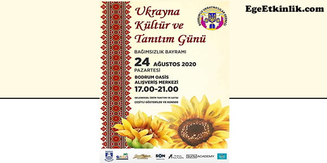 Bodrumlu Ukraynalılar Derneği tarafından düzenlenecek Ukrayna Kültür ve Tanıtım Günü 24 Ağustos Pazartesi günü Bodrum Oasis Alışveriş Merkezinde gerçekleşecek.