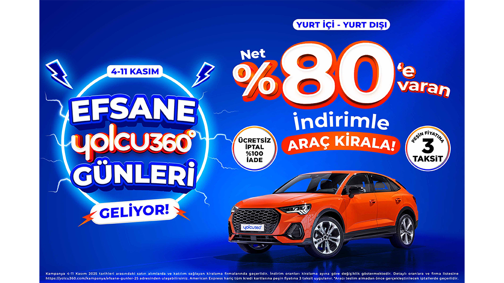 Efsane Yolcu360 Günleri dönemlerinde, araç kiralama rezervasyonlarına net %80’e varan indirim fırsatları sizi bekliyor. Bu kampanya sayesinde hem erken rezervasyon avantajı yakalayabilir hem de yılın en uygun fiyatlarıyla seyahatinizi planlayabilirsiniz.
