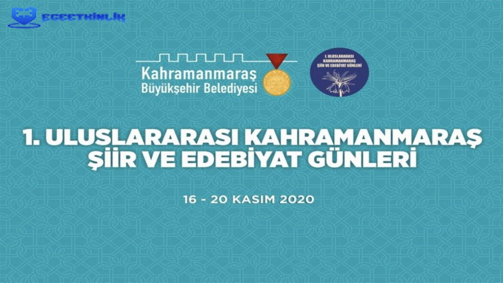 1. Uluslararası Kahramanmaraş Şiir ve Edebiyat Günleri – 16/20 Kasım 2020