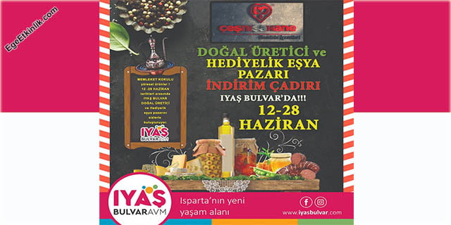 Isparta’nın en önemli alışveriş ve eğlence merkezlerinden olan İyaş Bulvar AVM, 12 Haziran’da Doğal Üretici ve Hediyelik Eşya Pazarı İndirim Çadırı etkinliğine imza atacak. Bu etkinlik sayesinde, salgın nedeniyle sıkışan üreticiler ürünleri tanıtabilecek ayrıca vatandaşlar uzun süre sonra eğlenip, alışveriş yapıp, ürünlerin tadına bakabilecekler.