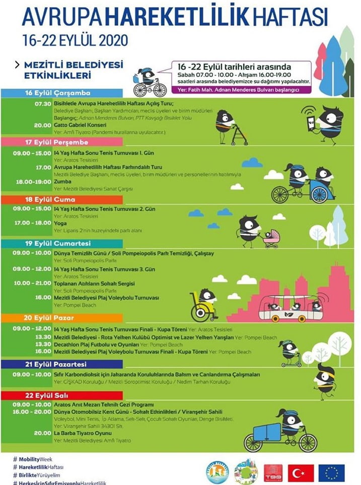 Mezitli Belediyesi, geçen sene olduğu gibi bu sene de Avrupa Hareketlilik Haftası’nda dopdolu etkinlikler ile sizleri bekliyor. Etkinlikler sosyal mesafeye uygun gerçekleşecektir.