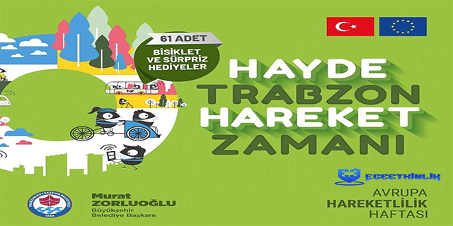 16 ve 22 Eylül tarihleri arasında Avrupa Hareketlilik Haftası olarak kutlanacak. Bu özel haftada gönüllüler, insanları daha fazla hareket içeren hareketlere teşvik edecek. Peki bu etkinlikler kapsamında Trabzon’da ne olacak?